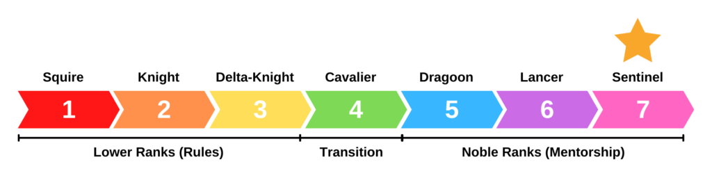 A Sentinel is the seventh Rank, or “level,” that any Sword Tag participant achieves, the last one in the sequence. Sentinels do not have special values associated with this rank, but should still understand and abide by the prior values that they have proven they know. At this point, the Sentinel is a “proto-Marshal,” having the skill and knowledge to aid in facilitating game play if needs be. They can also fill in for any other Noble Rank if numbers are low. When they turn 18, they can proceed to becoming a Marshal, if that’s a direction they would like to go.